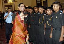 नई दिल्ली में सोमवार, 17 अगस्त को मुख्यमंत्रियों के सम्मेलन में उड़ीसा के मुख्यमंत्री से हाथ मिलाते कर्नाटक के मुख्यमंत्री येदियुरप्पा.