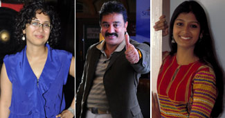 सिकंदर खेर और ओमी वैद्य के साथ अन्य साथी मेहमान फोटोग्राफरों को पोज देते हुए.