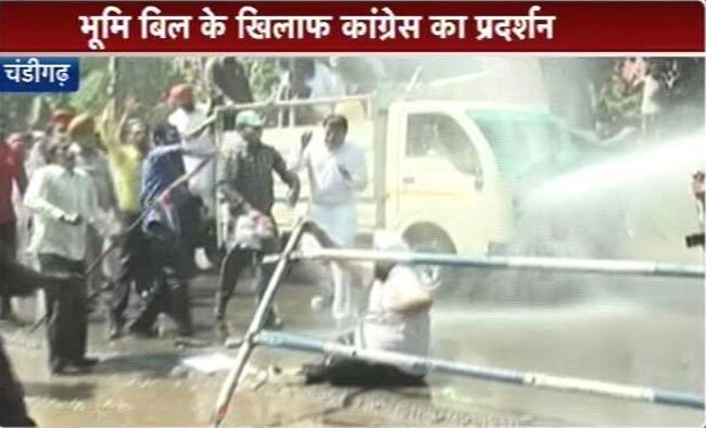 केंद्र सरकार के संशोधित भूमि अधिग्रहण बिल के खिलाफ चंडीगढ़ में मंगलवार 24 मार्च 2015 को कांग्रेस नेताओं और कार्यकर्ताओं ने प्रदर्शन किया.