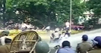 प्रदर्शकारियों को रोकने के लिए पुलिस ने पहले लाठियां भांजी, जबकि बाद में वाटर कैनन का भी प्रयोग किया.