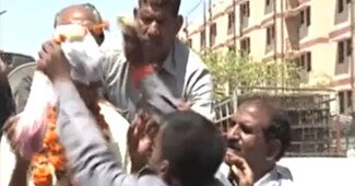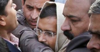 रैली के दौरान कई लोग AAP के चीफ अरविंद केजरीवाल का मास्क पहने भी प्रचार करते दिखे.