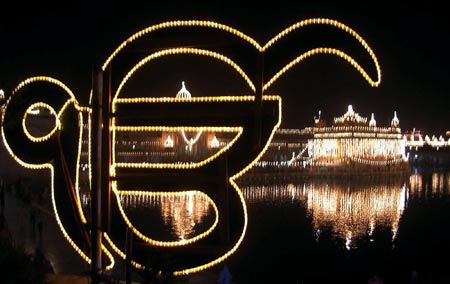 गुरु गोविंद सिंह के जन्मदिन की पूर्वसंध्या पर रौशनी से नहाया अमृतसर का स्वर्ण मंदिर. गुरु गोविंद सिंह सिखों के दसवें गुरु थे. (फोटोः पीटीआई)