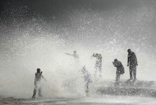 बृहस्पतिवार, 23 जुलाई, 2009 को मुंबई में आए हाई टाइड का दृश्य. इस दौरान समुद्र के किनारे खड़े लोग इसके चपेटे में आ गए. हाई टाइड के दौरान बरसात नहीं होने से मुबई के लोगों ने राहत की सांस ली है.