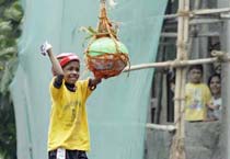 ठाणे में मटका तक पहुंचने का प्रयास करती गोविंदाओं की टोली.
