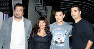 पार्टी में करण जौहर और कल्कि के साथ पोज देते आदित्‍य.