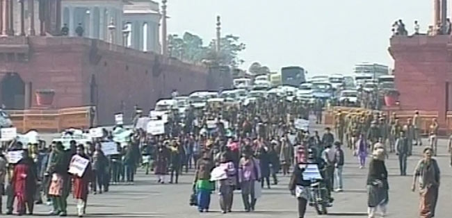पीड़िता के लिए न्याय की मांग करते हुए शुक्रवार को सैकड़ों महिलाओं एवं विद्यार्थियों ने दिल्ली के रायसीना हिल की तरफ मार्च किया.