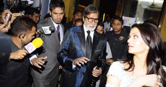 समारोह में हाथ उठाकर अपने प्रशंसकों का अभिवादन स्वीकार करतीं ऐश्वर्या राय बच्चन.