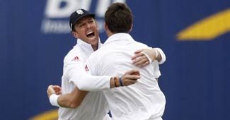 तीसरे टेस्ट में भारत को एक पारी और 242 रन से हराने के बाद इंग्लैंड के खिलाड़ी खुशी मनाते हुए. इस जीत के साथ इंग्लैंड टेस्ट में नंबर एक की टीम बन चुका है.