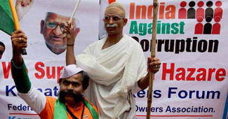 देखिए कैसी विडंबना है यह. एक ओर अनशन करते अन्ना हजारे तो दूसरी ओर विभिन्न पार्टियों के नेता एक जगह इक्ट्ठे होकर दावत उड़ा रहे हैं.