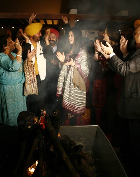 नई दिल्ली में 13 जनवरी को लोहड़ी मनाती प्रीति जिंटा और चेरी ब्लेयर.