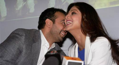 अहमदाबाद में इंडियन प्रीमियर लीग- 3 के टिकट लांच के मौके पर बॉलीवुड की अभिनेत्री और राजस्थान रॉयल्स की साझीदार शिल्पा शेट्टी अपने पति राज कुंद्रा के साथ.