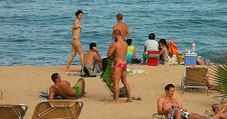 राकेश की शॉर्ट ड्रेस को पेश करती मॉडल.