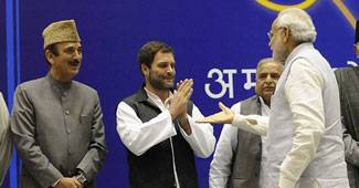 गृह मंत्री राजनाथ सिंह पूरे कार्यक्रम के दौरान प्रधानमंत्री मोदी के साथ बैठे रहे.