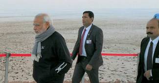 प्रधानमंत्री ने इस दौरान आसमानी नीले रंग की एक जैकेट पहनी थी और भूरे रंग की शॉल ओढ़ रखी थी, जबकि ओलांद ने गहरे रंग का सूट पहन रखा था.