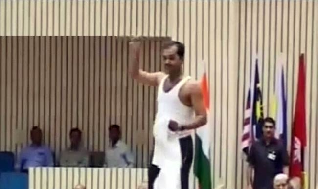 प्रधानमंत्री मंच पर खड़े रहे, जब तक सुरक्षाकर्मियों ने उस व्यक्ति को विज्ञान भवन के कक्ष से बाहर किया.