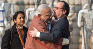 मुख्य अतिथि फ्रासं के राष्ट्रपति फ्रांस्वा ओलांद भारत के राष्ट्रपति प्रणब मुखर्जी के साथ राजपथ पहुंचे.
