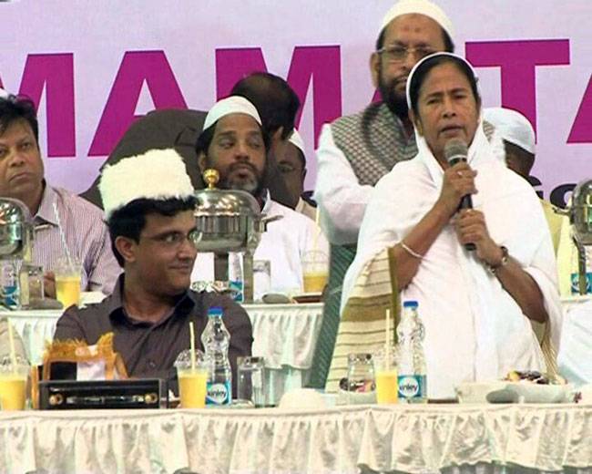 पूर्व भारतीय कप्तान सौरव गांगुली सोमवार को बंगाल की मुख्यमंत्री ममता बनर्जी के साथ इफ्तार पार्टी में दिखे. गांगुली ने यहां पर टोपी भी पहनी और प्रार्थना भी की.