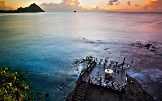 समुद्र का किनारा, दूर तलक पानी ही पानी, एकांत का अनूठा अनुभव. सेंट लुसिया के इस रेस्त्रां में कपल्स के लिए शैम्पेन की एक खास रेंज भी है. फर्श से लेकर कुर्सी तक को जहां वुड फिनिश दिया गया है, वहीं टेबल से लेकर लाइटिंग तक पर खास ध्यान दिया गया है.