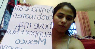 साओ पोलो में एक मस्जिद के बाहर ट्यूनिशिया की अमीना टेलर के समर्थन में प्रदर्शन करतीं महिला अधिकार संगठन फेमेन की महिलाएं.