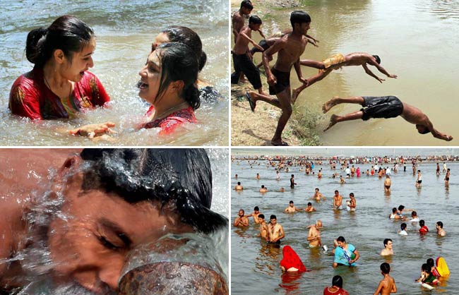 पारा चढ़ते ही बच्चे तो बच्चे, महिलाओं को भी पानी में अटखेलियां करने का मौका मिल गया है. यह तस्वीर जम्मू की है