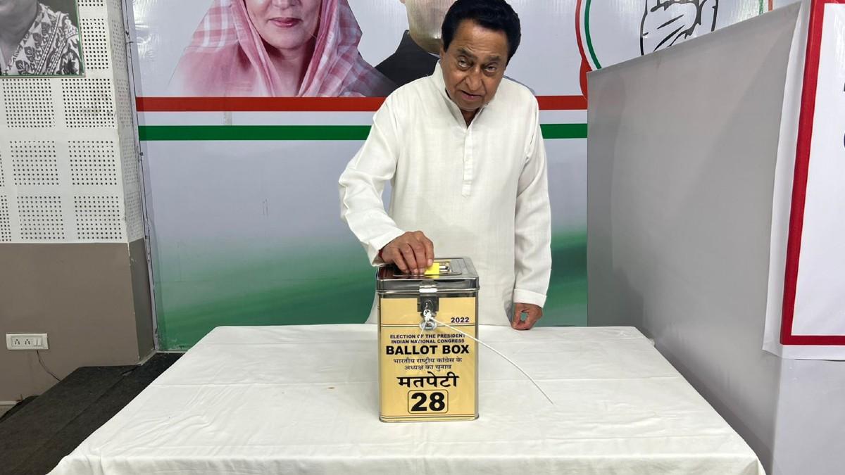 पूर्व मुख्यमंत्री कमलनाथ और उनके सांसद बेटे नकुल नाथ ने कांग्रेस के राष्ट्रीय अध्यक्ष के चुनाव के लिए भोपाल पीसीसी में बने मतदान केन्द्र पर पहुंचकर वोट डाला. (इनपुट- रवीश पाल सिंह)