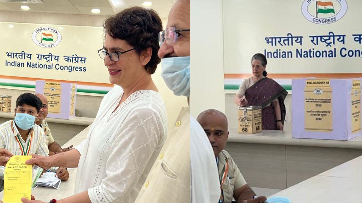 दिल्ली स्थित कांग्रेस दफ्तर में पार्टी की अंतरिम अध्यक्ष सोनिया गांधी और महासचिव प्रियंका गांधी ने वोट डाला.