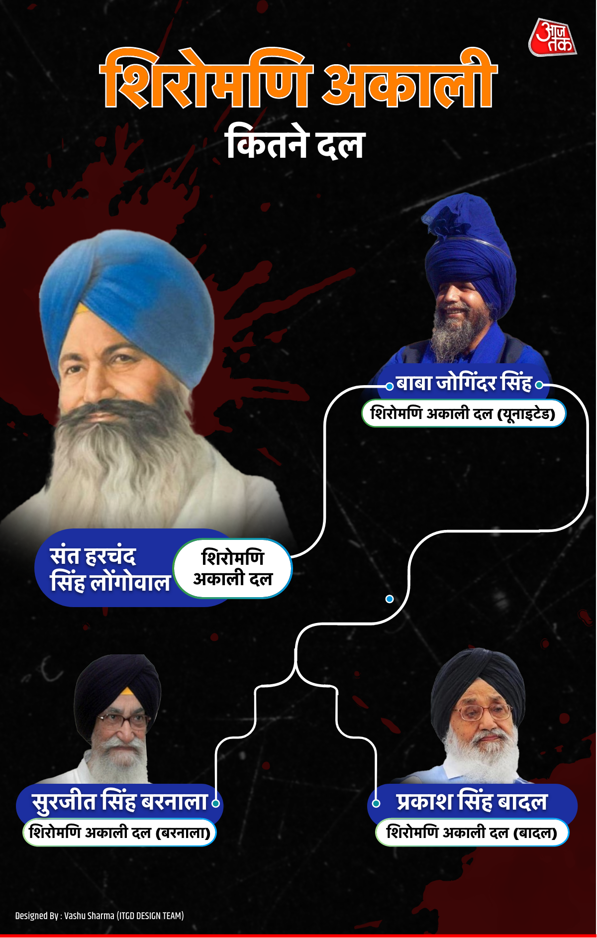 पंजाब के प्रमुख राजनीतिक दल शिरोमणि अकाली दल (एसएडी) की स्थापना 1920 में हुई थी. इस पार्टी का इतिहास भी बगावत और टूट की घटनाओं से भरा पड़ा है. 1984 में पार्टी दो फाड़ हो गई थी- शिरोमणि अकाली दल लोंगोवाल और शिरोमणि अकाली दल यूनाइटेड. लोंगोवाल ग्रुप का नेतृत्व संत हरचंद सिंह लोंगोवाल और यूनाइटेड का नेतृत्व बाबा जोगिंदर सिंह के पास था. लोगोंवाल की हत्या के बाद ये धड़ा भी दो गुट में बंट गया.