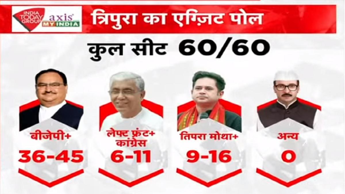 त्रिपुरा चुनाव संपन्न हो चुका है. जनता अपना वोट डाल चुकी है, ईवीएम में नतीजे कैद हैं, कौन जीतेगा, 2 मार्च को पता चल जाएगा. अब असल नतीजों से पहले एग्जिट पोल के नतीजे आ गए हैं. Axis My India और आजतक के एग्जिट पोल में बीजेपी पूर्ण बहुमत के साथ फिर वापसी करने जा रही है.