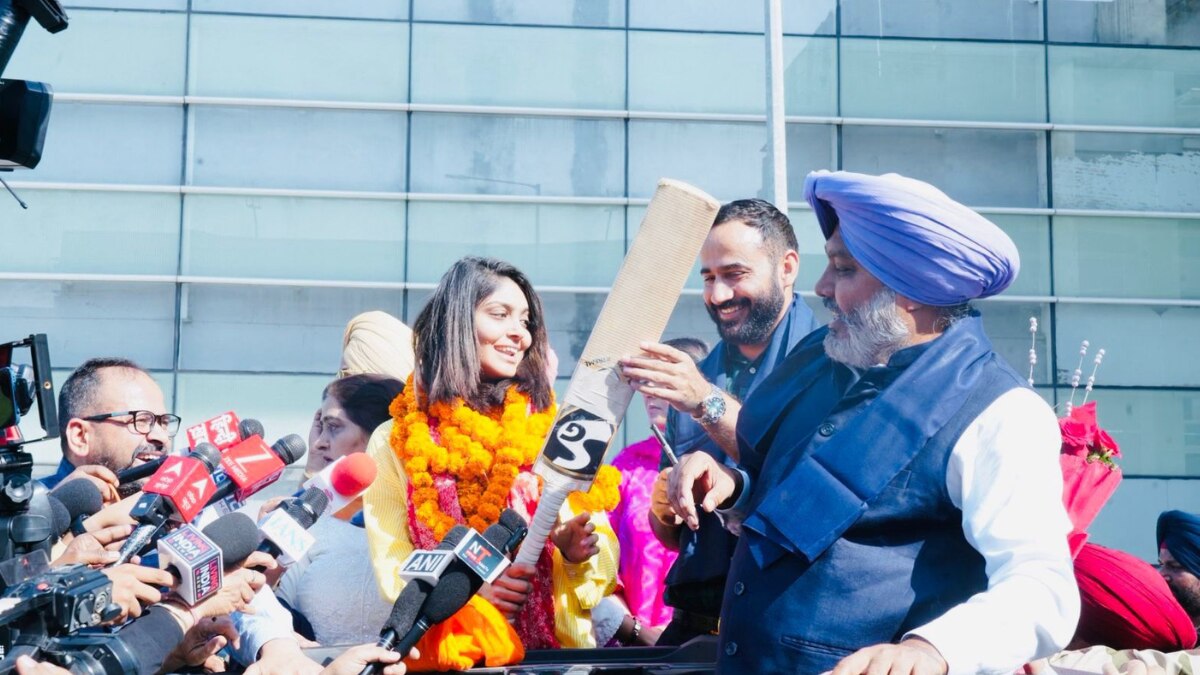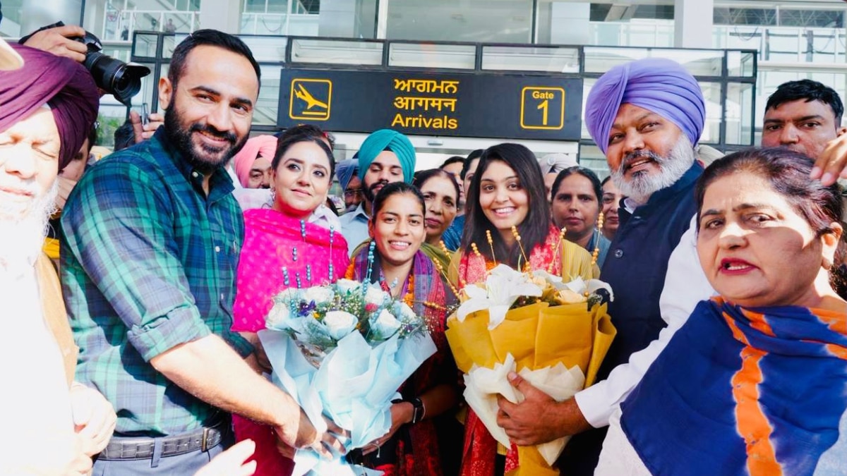 एयरपोर्ट पर ढोल-नगाड़ों की थाप पर जब दोनों खिलाड़ी पहुंचीं, तो माहौल जश्न में बदल गया. पंजाब सरकार, जिला प्रशासन और खेल विभाग के अधिकारियों ने फूलों के हार पहनाकर और भांगड़ा कर दोनों खिलाड़ियों का सम्मान किया.