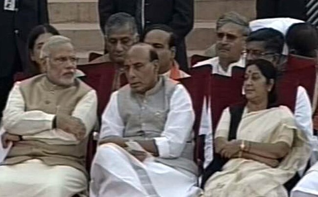 पिछले 24 घंटे में भारत के प्रधानमंत्री नरेंद्र मोदी और उनके मंत्रियों ने कई रंग दिखाए और देखें. सोमवार शाम छह बजे शपथ ग्रहण समारोह से शुरू हुआ 24 घंटा मंगलवार शाम छह बजे उनकी पहली कैबिनेट की बैठक के साथ खत्म हुआ. इस दौरान जहां मजबूत इरादों के साथ विकास के वादे गूंजे वहीं मंत्रिमंडल में ज्यादा भाव न मिलने से कुछ दल बौखला भी गए. पेश हैं वादों, जज्बातों और बदलते रिश्तों के मोदी सरकार के पहले 24 घंटों के 24 रंग....