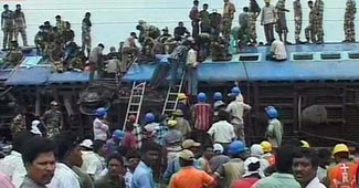 उत्तर प्रदेश में कांशीराम नगर जिले के दरियावगंज थाना क्षेत्र में गुरुवार तड़के बारात ले जा रही एक बस चौकीदार विहीन रेलवे क्रांसिग पर छपरा एक्सप्रेस की चपेट में आ गयी जिससे 45 बारातियों की मौत हो गयी जबकि 31 अन्य घायल हो गये.