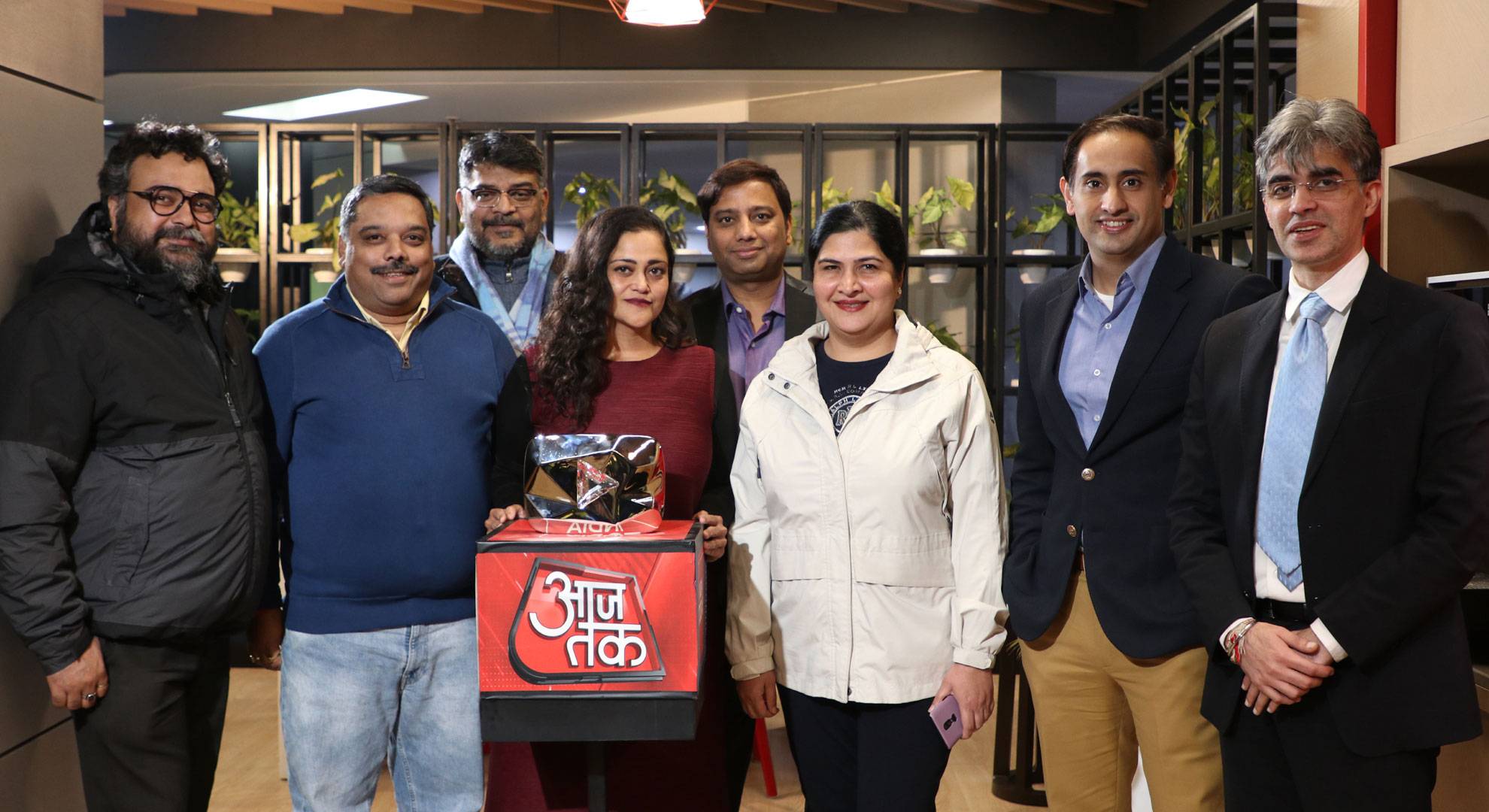 बाएं से: पाणिनि आनंद (एडिटर - Aajtak.in), सुप्रिय प्रसाद (न्यूज़ डायरेक्टर - TVTN), कमलेश किशोर सिंह (मैनेजिंग एडिटर - ITGD), कली पुरी (वाइस-चेयरपर्सन - इंडिया टुडे ग्रुप), विश्वलोक नाथ (स्ट्रेटेजिक अलायंस, बिजनेस डेवलपमेंट एंड सिंडिकेशन - TVTN), प्रेरणा कौल मिश्रा (मैनेजिंग एडिटर - सोशल मीडिया एंड कंटेंट सर्विसेज), राहुल कंवल (न्यूज़ डायरेक्टर - TVTN और मैनेजिंग एडिटर - स्पेशल ऑनलाइन प्रोजेक्ट्स) और विवेक मल्होत्रा (ग्रुप चीफ मार्केटिंग ऑफिसर)