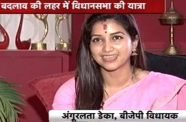 असम में बीजेपी के उगते सूरज के बीच एक नायाब कमल खिला है. ये हैं राज्य में बीजेपी के लिए चुनाव जीतने वालों में एक युवा महिला अंगूरलता डेका. अंगूरलता एक अभिनेत्री और थियेटर आर्टिस्ट रही हैं. सूबे में अंगूरलता की अच्छी खासी लोकप्रियता है. अंगूरलता को उम्मीद है कि वो अपने इलाके और असम की बेहतरी के लिए कुछ कर पाएंगीं.