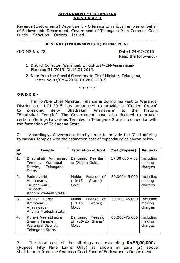 तिरुपति के वेंकटेश्वर मंदिर में बुधवार को राव ने स्वर्ण आभूषण दान किए थे, तो बताया गया था कि उन्होंने तेलंगाना राज्य बनने पर भगवान वेंकेटेश्वर का आभार जताने के लिए ऐसा किया. मुख्यमंत्री राव ने तेलंगाना आंदोलन के वक्त ये शपथ ली थी कि तेलंगाना राज्य बनने पर वह स्वर्ण आभूषण दान देंगे.