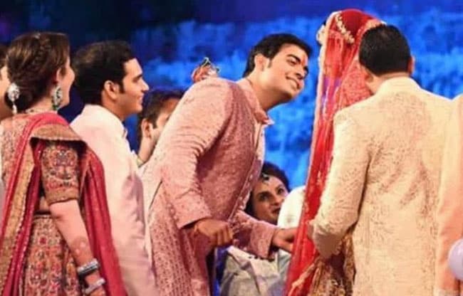 #Mumbai: Mukesh & Nita Ambani with family at the wedding ceremony of their son Akash Ambani with Shloka Mehta. The couple will tie the knot today in Mumbai. pic.twitter.com/4DzEia2UhZ