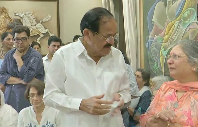 Delhi: Vice President M Venkaiah Naidu pays tribute to former Union Finance Minister #ArunJaitley who passed away earlier today. pic.twitter.com/ozjyPk2Cx6