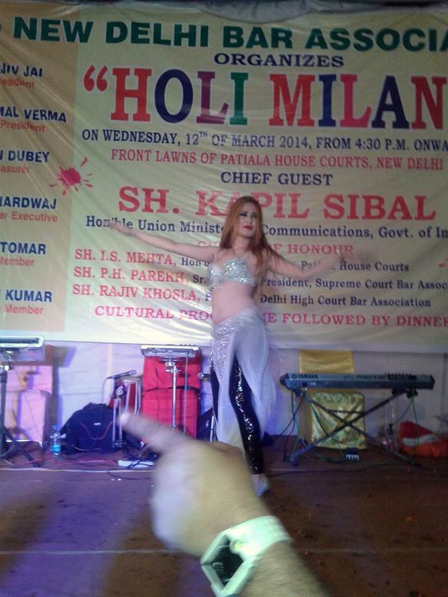 नई दिल्ली बार काउंसिल के होली मिलन समारोह में बेली डांसरों ने जमकर ठुमके लगाए. इस कार्यक्रम का आयोजन 12 मार्च को दिल्ली के पटियाला हाउस कोर्ट परिसर में किया गया था. देश के कानून मंत्री कपिल सिब्बल इस मिलन समारोह के मुख्य अतिथि थे.