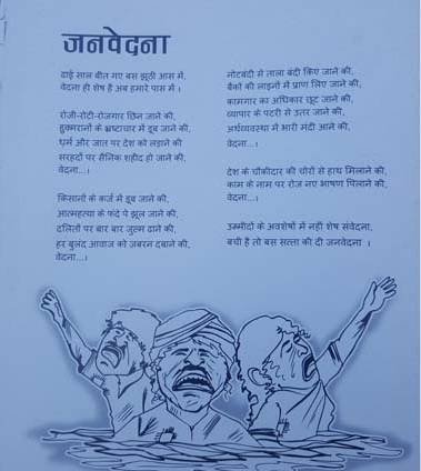 दिल्ली के तालकटोरा स्टेडियम में कांग्रेस के जनवेदना सम्मेलन में कांग्रेस उपाध्यक्ष राहुल गांधी, पूर्व प्रधानमंत्री मनमोहन सिंह और पूर्व वित्त मंत्री पी. चिदंबरम ने मोदी सरकार पर जम कर हमला बोला. कांग्रेस ने इस मौके पर मोदी सरकार के ढाई साल पूरे पर कविता का सहारा ले केंद्र सरकार पर हमला बोला और उसको नाम दिया है- जनवेदना यानी जनता का दर्द.