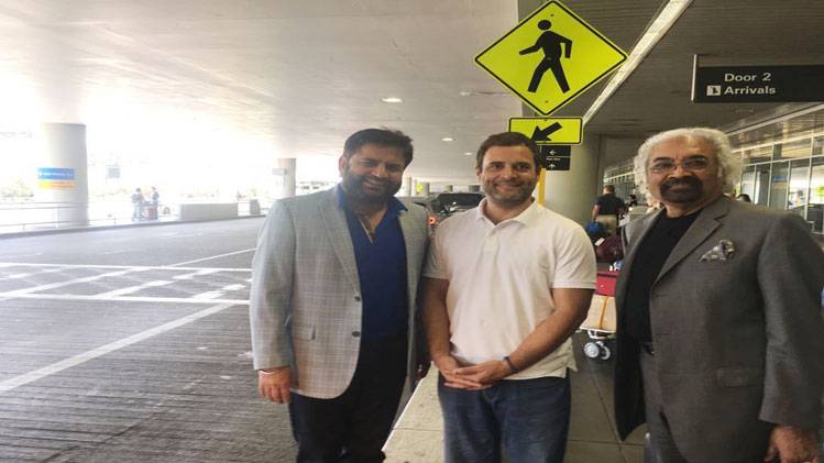 प्रोद्यौगिकीविद सैम पित्रोदा और भारतीय राष्ट्रीय प्रवासी कांग्रेस आईएनओसी अमेरिका के अध्यक्ष शुद्ध सिंह ने राहुल गांधी का सैन फ्रांसिस्को हवाई अड्डे पर स्वागत किया.