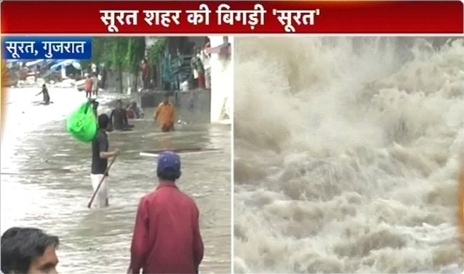 दक्षिण गुजरात और महाराष्ट्र में भारी बारिश की वजह से सूरत में बाढ़ के हालात हैं. नदी का पानी शहर में घुस चुका है. लगातार हो रही बारिश की वजह से उकाई डैम का जलस्तर बढ़ गया है. सूरत में बाढ़ की वजह ताप्ती नदी का पानी है. उकाई डैम ताप्ती नदी में करीब साढ़े चार लाख क्यूसेक पानी छोड़ा गया. नतीजा नदी का पानी शहर के निचले हिस्सों में भर गया. बड़ी-बड़ी इमारतों में पानी में घुस गया.