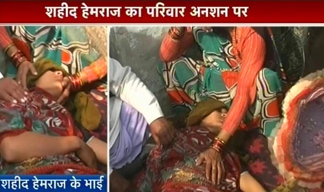 गौरतलब है कि सीमा पर पाकिस्तान द्वारा मारे गए शहीद लांस नायक हेमराज सिंह की पत्नी समेत पूरा परिवार सिर की मांग को लेकर अनशन पर बैठा हुआ है. हेमराज की पत्नी की तबीयत भी काफी खराब है.