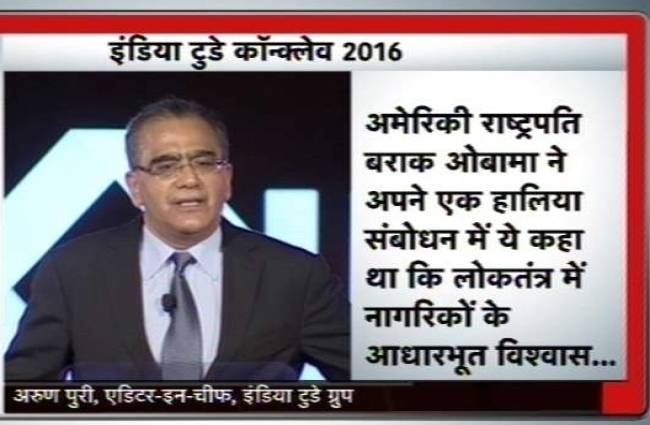 इंडिया टुडे कॉन्क्लेव 2016 का गुरुवार को 'इंडिया टुडे ग्रुप' के चेयरमैन और एडिटर इन चीफ अरुण पुरी के स्वागत भाषण के साथ आगाज हो गया. इस मौके पर अरुण पुरी ने कहा कि ये साल बहुत खास है क्योंकि हम इस साल इंडिया टुडे की 40वीं सालगिरह मना रहे हैं. उन्होंने कहा कि संविधान में भराेसा बनाए रखें.