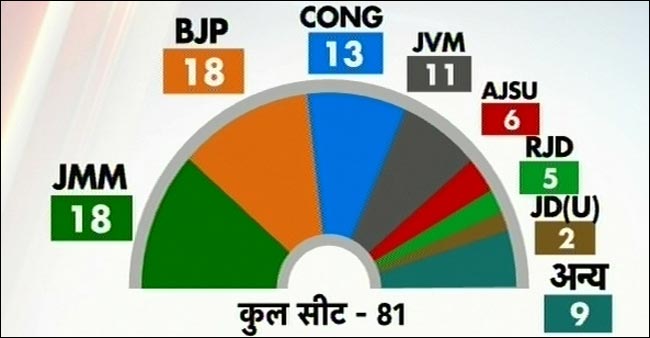 झारखंड में राष्ट्रपति शासन लगना तय नजर आ रहा है क्योंकि कोई भी पार्टी या गठबंधन सरकार बनाने की स्थिति में नहीं है. समझा जाता है कि प्रदेश के राज्यपाल सैयद अहमद ने राष्ट्रपति शासन लगाने की सिफारिश की है.