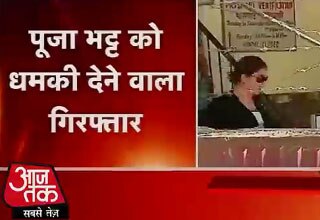 अभिनेत्री व फिल्मकार पूजा भट्ट को धमकी भरे फोन कॉल करने वाले अज्ञात व्यक्ति को गिरफ्तार कर लिया गया है. पूजा ने शनिवार सुबह ट्विटर पर जानकारी दी, 'कुछ देर पहले ही बांद्रा पुलिस थाने से अभय शास्त्री को फोन आया. उन्होंने पुष्टि की कि नौ जनवरी को मुझे फोन कर धमकाने वाले व मेरे साथ अभद्रता करने वाले व्यक्ति को गिरफ्तार कर लिया गया है.'