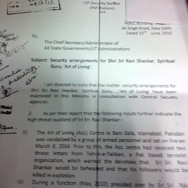 गृह मंत्रालय ने कर्नाटक की पुलिस को उनकी सुरक्षा और मजबूत करने के लिए कहा है. सेंट्रल सिक्योरिटी एजेंसियों से अलर्ट मिलने के बाद मंत्रालय ने यह कदम उठाया. इस्लामाबाद के बानी गाला में स्थित आर्ट ऑफ लिविंग के सेंटर में कुछ समय पहले तोड़-फोड़ भी की जा चुकी है.