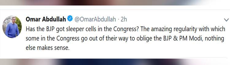 उमर का इशारा इस ओर था कि कांग्रेस नेता पीएम मोदी के खिलाफ विवादित बयान देकर एक तरह से बीजेपी के समर्थन में ही माहौल बना रहे हैं. उमर ने अपने ट्वीट में कहा, 'रह-रह कर कांग्रेस के नेता जिस प्रकार से बीजेपी और पीएम मोदी पर कृपा बरसा रहे हैं, यह समझ से परे है.'