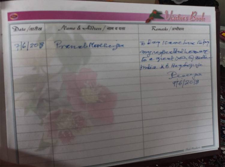 पूर्व राष्ट्रपति और कांग्रेसी नेता रहे प्रणब मुखर्जी ने विजिटर बुक में लिखा, 'आज मैं यहां भारत माता के महान बेटे को सम्मान देने आया हूं.' उन्होंने इस दौरान स्मारक बनाए गए हेडगेवार के जन्म स्थल पर हेडगेवार के चित्र पर फूल चढ़ाए और माल्यार्पण भी किया.