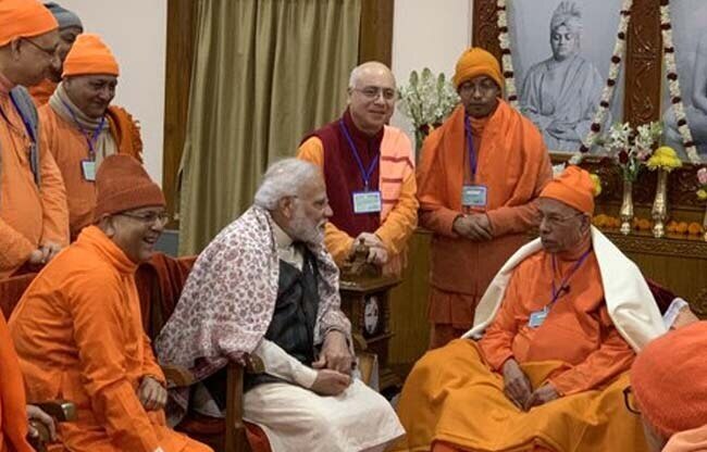Prime Minister Office (PMO): PM Narendra Modi is at Belur Math, where he is interacting with respected saints and seers. pic.twitter.com/MOJG2UzPhw