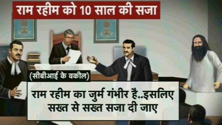 सीबीआई की विशेष अदालत ने सोमवार 28 अगस्त, 2017 को डेरा सच्चा सौदा प्रमुख बाबा राम रहीम को 15 साल पुराने रेप केस में 10 साल की सजा सुनाई है. राम रहीम के धारा 376, 506 और 511 के तहत उन्हें सजा सुनाई गई है. राम रहीम को 25 अगस्त को ही दोषी ठहरा दिया गया था, लेकिन उन्हें सजा सोमवार को सुनाई गई. सुरक्षा को देखते हुए रोहतक जेल में ही कोर्ट बनाया गया.