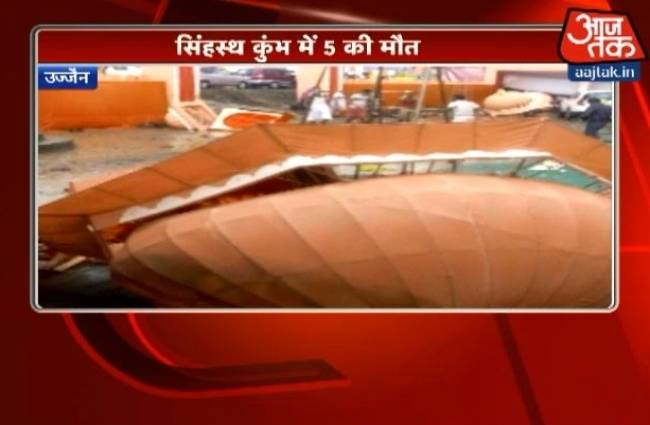 4 devotees and one sadhu die as pandal disintegrates and falls due to strong winds followed by heavy rainfall at #SimhasthKumbh2016, MP.